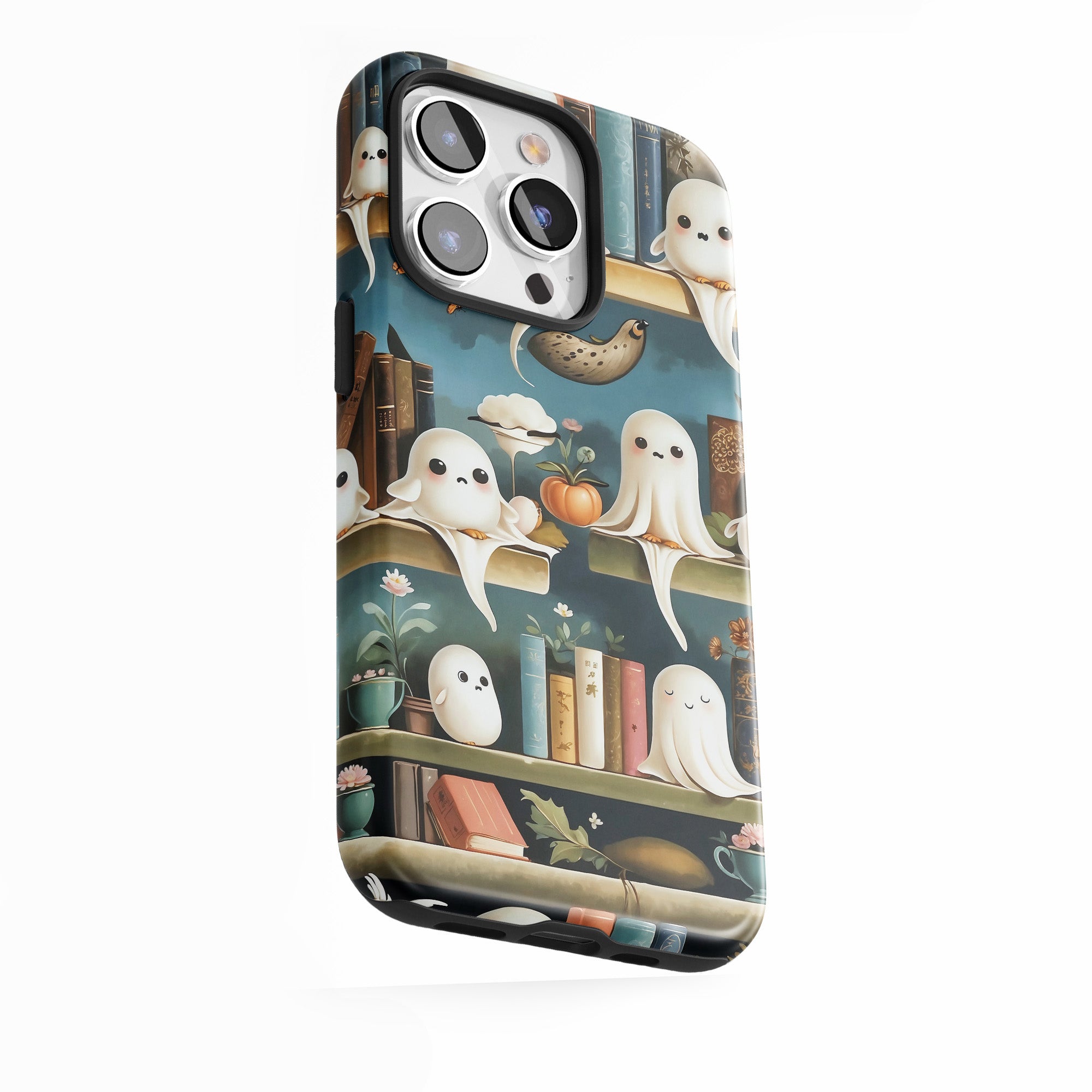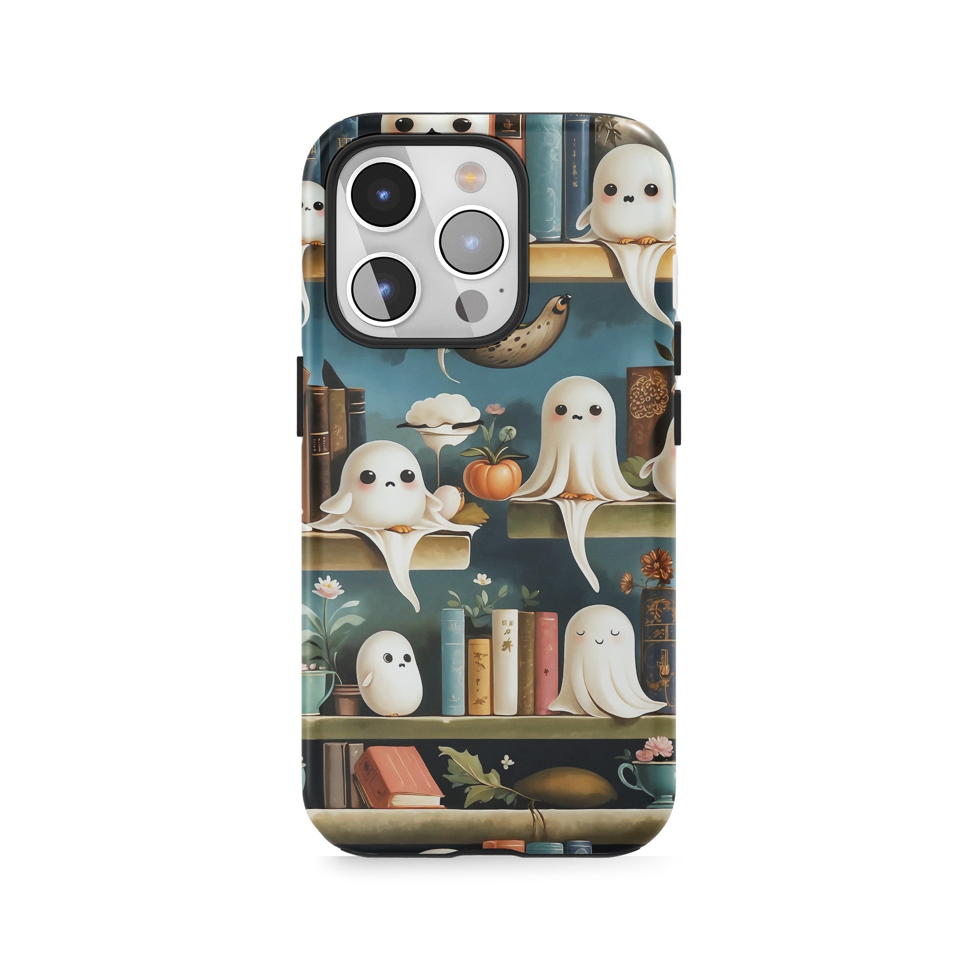 Bookshelves haunted by spirits.