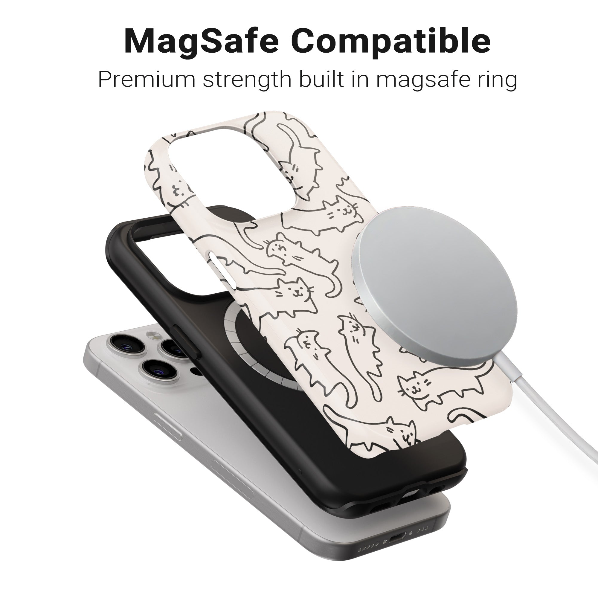Minimal black-and-white cat doodles for feline fans.